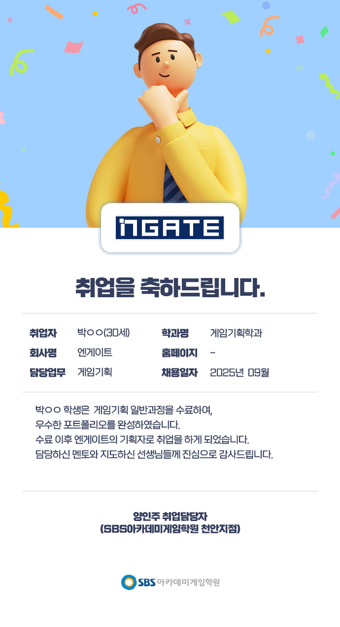 ※ 현재 SBS아카데미게임학원은 개인정보를 제3자에게 제공하지 않습니다.